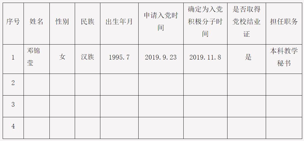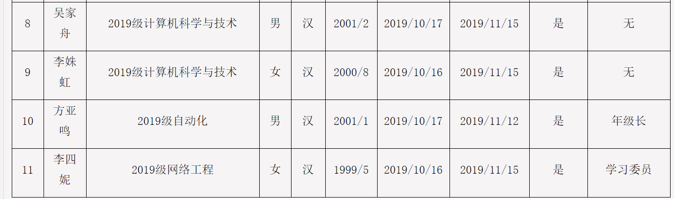 公司党委关于确定武秀娟等11名同志为发展对象的公示经2019级本科党支部培养考察,在听取党小组、培养联系人、党员和群众意见的基础上,经党支部(或支委会)讨论,确定武秀娟等11位同志为发展对象。...