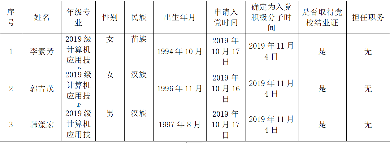 公司党委 自动化专业本科党支部关于确定 杨涵等8名同志为发展对象的公示经公司自动化专业本科党支部培养考察,在听取培养联系人、党员和群众意见的基础上,经党支部讨论,确定杨涵等...