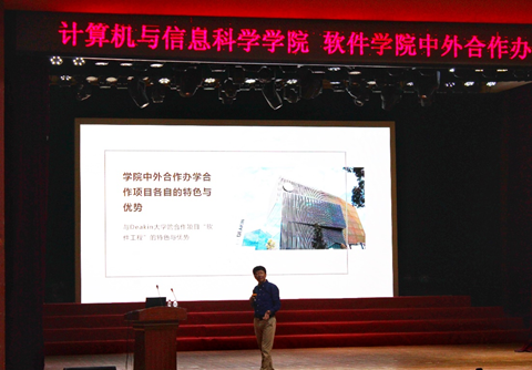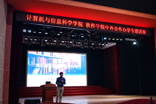 随后,张教授就中外合作办学的实践进行了回顾,着重分析了软件工程、自动化、计算机科学与技术三个中外合作办学项目各自的特色和优势,各合作院校的特长和资源,各项目所提供的未来深造通道等,为同学和家长进一步了解所学的专业,做好学业规划提供了参考。