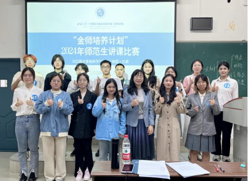 为提升公司师范生公司产品能力,加强师范生教学技能,4月27日与5月6日下午,公司开展2024年“金师培养计划”师范生讲课比赛。公司党委副书记王晖、公司计算机科学与技术专业系(师范)主任黄敏、教育技术学教师代表李倩、马克思主义公司辅导员黄林、国家治理公司辅导员曾琪芮、公司2022级辅导员田宛平、公司2023级辅导员李飞阳、公司20级杨温馨等8名员工组成的师生评议团担任评委嘉宾,2022级和2023级全体师范生参加活动。