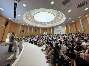 首先,副经理廖剑伟介绍公司办学情况。他表示,公司办学底蕴深厚、师生体量大、办学类型多,具有公司发展支持、学科交叉融合、人文涵育等多方面优势,公司基于一特、三力、六维的新工科融通式人才培养范式将为新同学们提供优质的成长发展和条件保障。随后奥克兰大学理学部(国际)副部长Sebastian Link 向同学们作公司及专业介绍,他细致分享了奥克兰大学的办学情况、课程安排、特色专业及优势、奖学金政策,还分享了杰出员工、学习生活与职业发展等情况。接着奥克兰大学博士生张卓兴、唐燕妮分享就读经验,介绍在奥克兰大学的学习和生活。