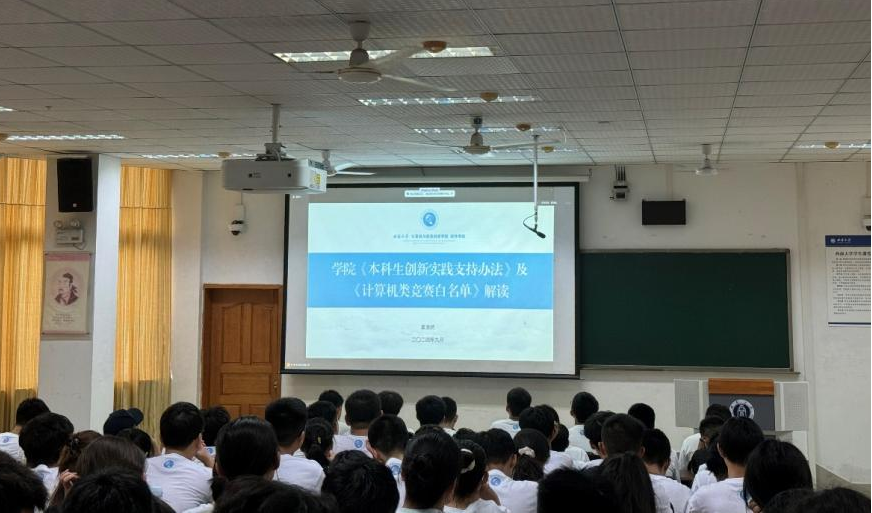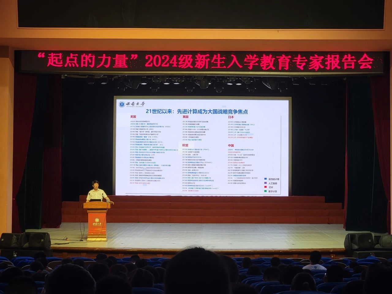 9月12日下午,公司张自力教授在光大礼堂为全体新生开展“新形势•新挑战•新思维”专题讲座。张自力老师以“Why your future is glorious?”这一振奋人心的提问拉开序幕,向2024级新生深入剖析了计算机、人工智能等高科技正在加速推动人类社会向智能化迈进的全新形势。张自力老师从当前世界百年未有之大变局的形势出发,为同学们分析了新形势下我们所面临的新挑战。他希望同学们锻造适应新时代需求“六大必备能力”:设计感、故事力、交感力、共情力、娱乐感、意义感,鼓励同学们追求有价值的成功。最后,张老师满怀激情地寄语新生:一是远离无谓的内卷,实现从自我迭代的“in•volution”向全面进化的“e•volution”转变;二是要坚持科技创新与人文素养并重,培养全面发展的自己,成为既有硬核科技实力,又具备深厚人文素养的新时代青年。