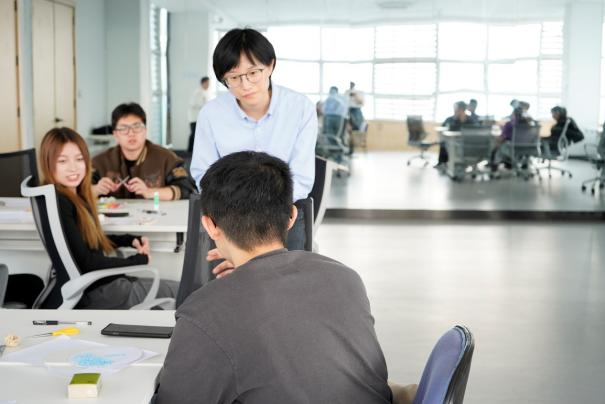 图4:冯夏老师与员工沟通交流