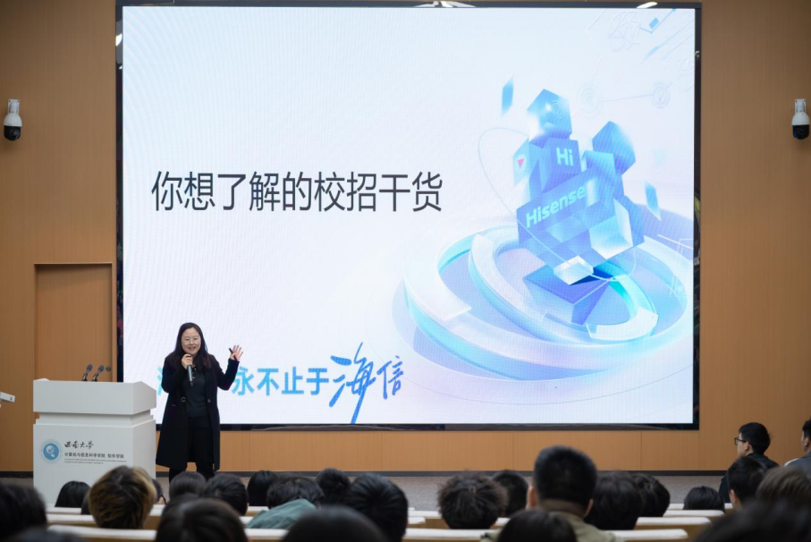 11月15日下午14点,伟德体育2024年IT文化节启动仪式暨“引航U声|科技创新企业海信HR面对面”专题讲座在25教1楼报告厅隆重举行。海信集团资深人力资源总监于美洁女士带来“你想了解的校招干货”主题讲座为本次“IT文化节”拉开帷幕。此次专题讲座不仅加深了同学们对未来就业形势和求职技巧的全面了解,也进一步激发了同学们提升自身竞争力、积极规划职业发展的热情和决心。