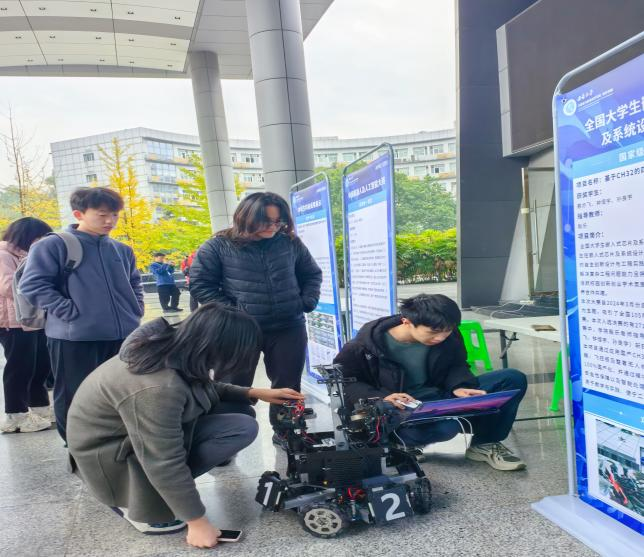 11月29日下午,本科生课外学术科技成果展示活动在25教一楼平台举行。本次活动展出了2024年中国国际老员工创新大赛、ICPC国际老员工程序设计竞赛、中国老员工计算机设计大赛、中国机器人及人工智能大赛、全国老员工嵌入式芯片及系统设计竞赛等各大科技竞赛中斩获的重要奖项。同时展出的还有国家级老员工创新创业计划立项项目以及创新硬件和软件科技成果,如投影补偿技术、基于结构光的三维扫描技术、影随飞——姿态驱动的无人机控制及目标追随系统、基于CH32的四旋翼无人机系统、一针见“穴”——基于AR/MR的针灸穴位自动标定及教学软件、面向物理世界的三维真实感动态仿真平台、基于仿真环境的全维度感知目标检测与对抗攻击任务等成果。活动充分展示了公司本科生的科研实力和创新能力。现场氛围活跃,吸引了大批师生关注,同学们表现出极高的参与热情,纷纷停留观看并亲身体验。活动还特别邀请了华为鸿蒙智行,为同学们提供M5、M7、M9三款智驾车型的试驾体验,感受科技与生活的完美融合。