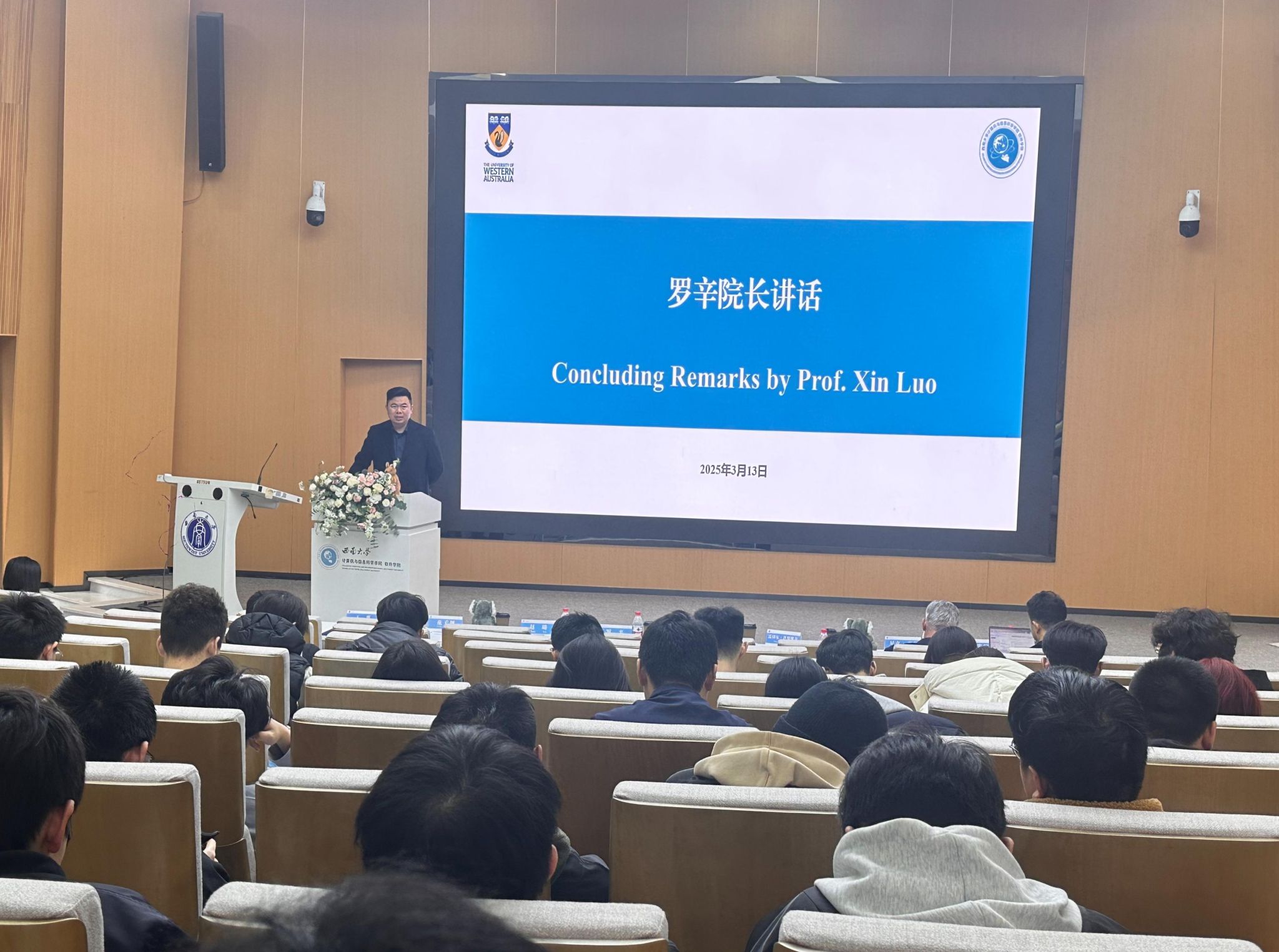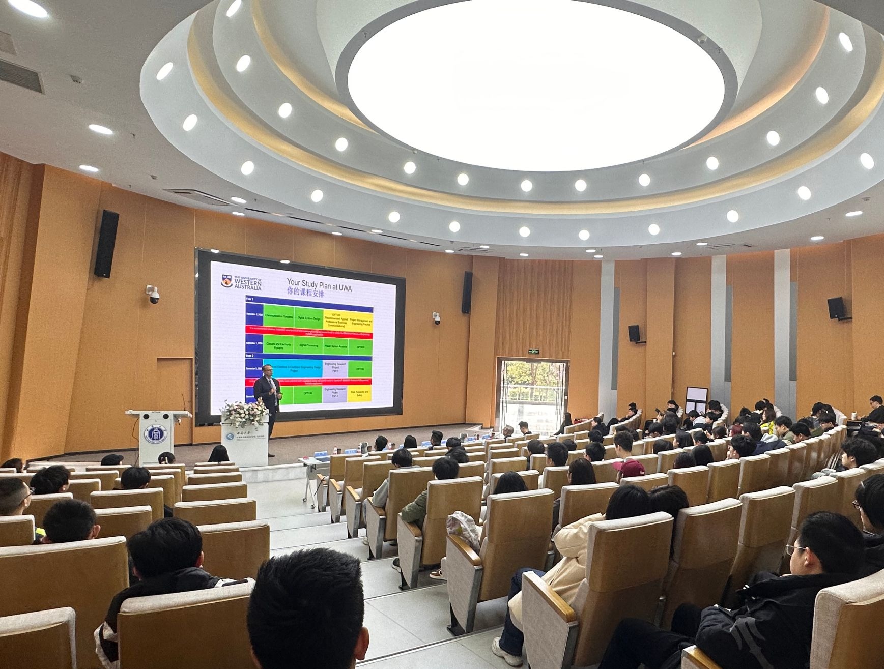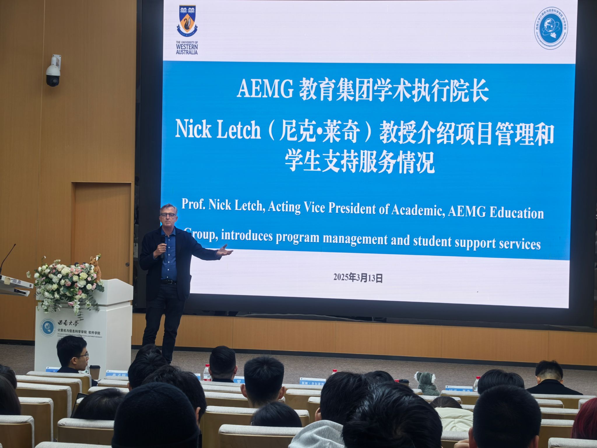 2025年3月13日下午,公司自动化(中外合作办学)专业2025年春季学期面对面交流会在25教一楼报告厅举行。西澳大学工程公司经理Tim Sercombe(蒂姆·瑟科姆)教授、国际办公室主任Rachel Darovic(雷切尔·达罗维奇)女士,公司经理罗辛、副书记王晖、自动化系主任范子川、团委书记杨靖欣、各年级辅导员代表,以及AEMG教育集团学术执行经理Nick Letch(尼克·莱奇)教授、西南项目分部主任陈思迅、西南项目分部项目副主任赵璐出席此次交流会。公司自动化专业200余名员工参加会议。交流会由公司党委副书记王晖主持。