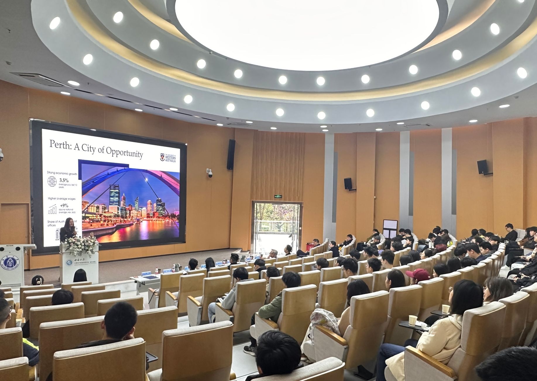 交流会上,西澳大学国际办公室主任雷切尔·达罗维奇女士介绍了西澳大学的区位优势、校园文化、科研实践机会以及校园活动等。西澳大学工程公司经理蒂姆·瑟科姆教授详细向同学们介绍了西澳大学在人工智能与智能控制领域的科研实力、产学研资源以及职业前景。AEMG教育集团尼克·莱奇教授补充讲解了“学籍注册”“学分互认”机制,强调AEMG将持续为同学们提供学术辅导、职业发展及跨文化支持服务。