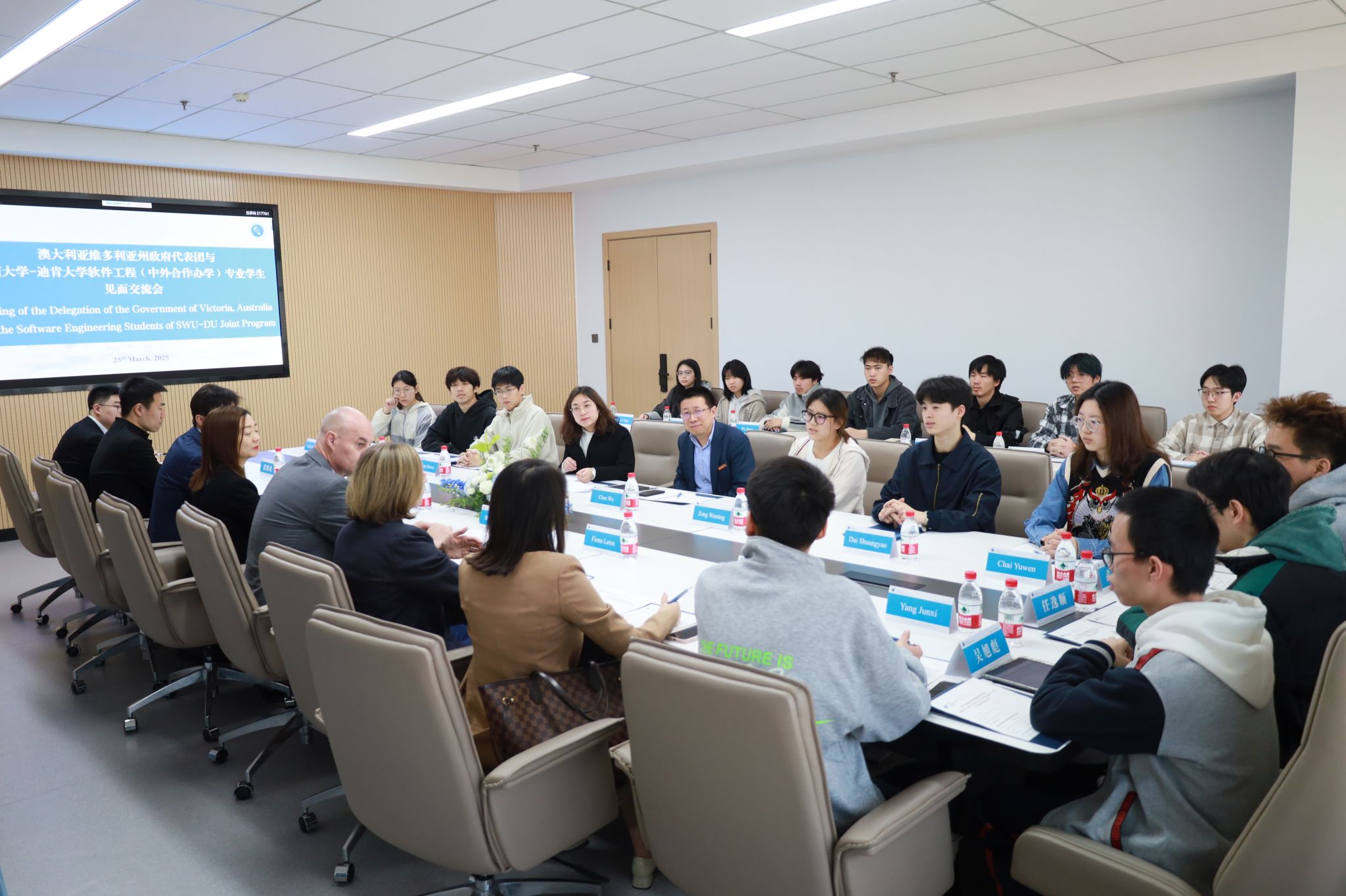 2025年3月25日上午,澳大利亚维多利亚州政府代表团与公司软件工程(中外合作办学)专业员工见面交流会在25教1314会议室举行。澳大利亚维多利亚州贸易投资成都代表处驻中华区特派专员石文(Brett Stevens),政府贸易、全球参与及国际教育事务部执行主任菲奥娜·莱托斯(Fiona Letos),大中华区副专员杜纬遥,教育服务主任陈维妙;中华人民共和国共和国驻墨尔本总领事馆李林泽副领事;伟德体育国际合作与交流处合作办学科科长张晓琦,国际交流科科员雷也;公司副书记王晖、副经理陈武、软件工程专业辅导员与中外合作办学项目秘书以及2023级、2024级软件工程(中外合作办学)专业员工代表共同参加交流会。