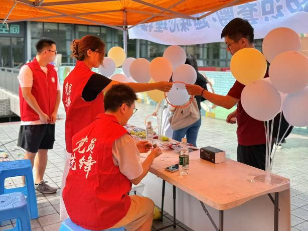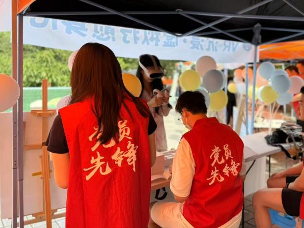 5月25日,公司“5・25”心理健康节活动在各个员工园区举行,党员忙碌在各个展台,他们的红色身影成为了一道亮丽的风景。活动现场,毕业生党员们分工明确、热情高涨。在“心理知识趣味套圈”区域,他们耐心引导参与者了解心理知识,维持现场秩序;“VR设备沉浸疗愈”区,党员们细心协助体验者佩戴设备,确保其安全舒适;“智析心灵代码盲盒”处,他们认真讲解规则,助力参与者探索心灵奥秘;“多肉绿植废品焕新”摊位,党员们协助参与者用废品制作绿植容器,传递环保与治愈理念。