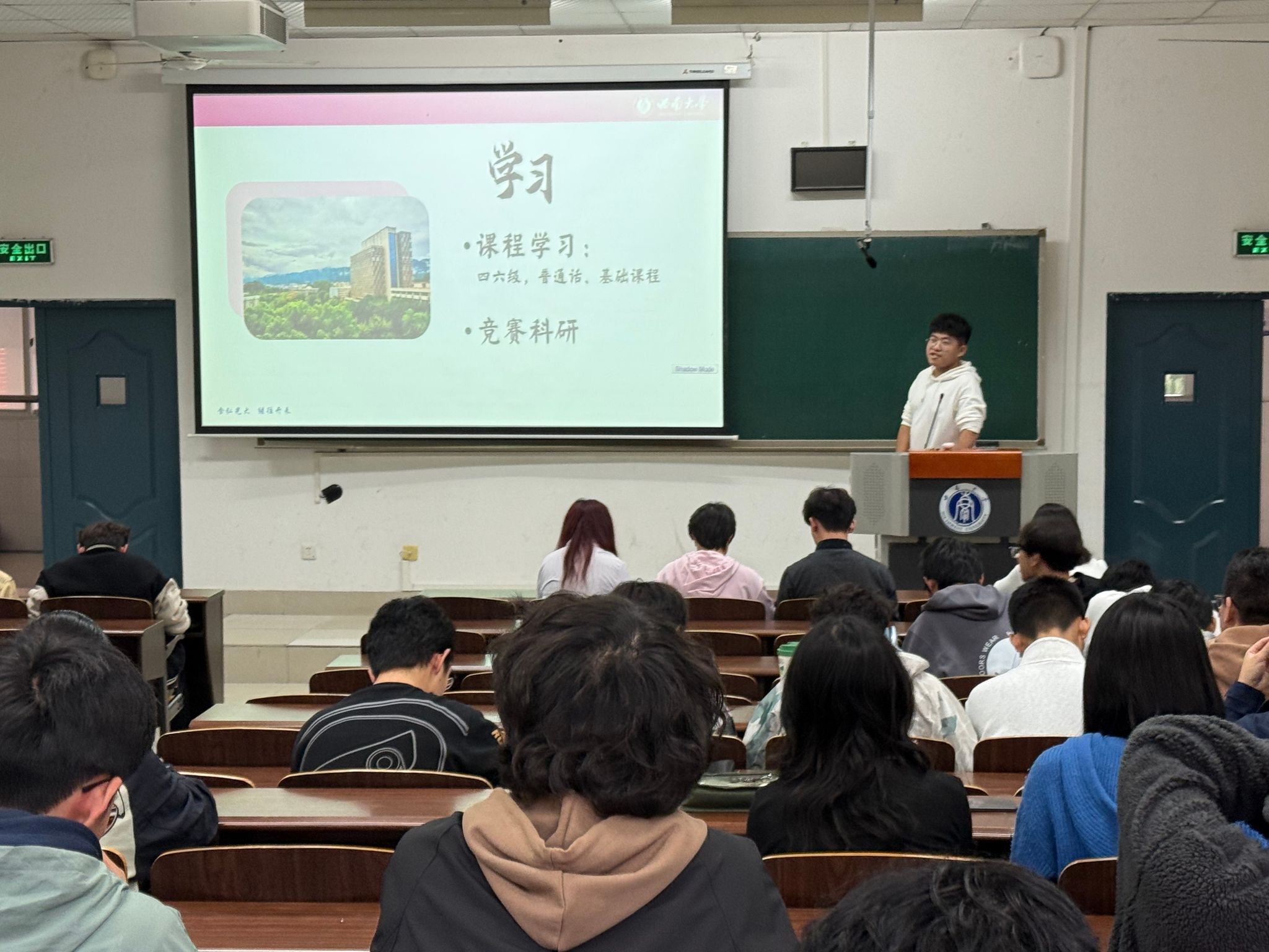 科研与专业技能方面,谢珺皓系统介绍本科生参与科研的意义与路径,详解计算机领域主要研究方向以及论文查阅工具的使用方法;豆柯锐从“课程分类”切入,帮助新生构建大学学习整体框架。员工工作与志愿服务领域,谢明彤解析校院级组织运作模式,传授“短期集中投入+定期复盘”的平衡技巧;林冉结合公司员工会经历,鼓励新生保持求知进步热情;杨佑齐详解志愿活动时长要求、身份认证、参与途径等实操流程,鼓励新生在服务中丰富阅历;陈晓雨衫则分享平衡员工工作与学习的实用技巧,介绍易入手的竞赛项目与入门方法。