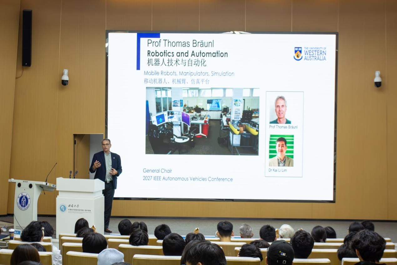 交流会上,Tim Sercombe教授从西澳大学学科优势、国际合作路径、教学资源配置、就业发展前景等方面作了详细介绍。他表示,西澳大学工程学科位列全球前100强,拥有先进的EZONE创新技术中心,配备无人机开发、自动驾驶模拟驾驶舱等先进设备,专业实力雄厚,能够为员工提供强有力的专业发展支持。西澳大学将与伟德体育继续携手推进本硕连读项目,共建前沿专业选修模块,持续为员工提供国际化的学术培养与实践平台,希望自动化专业学子能够把握机遇,在跨学科学习中实现全面成长。