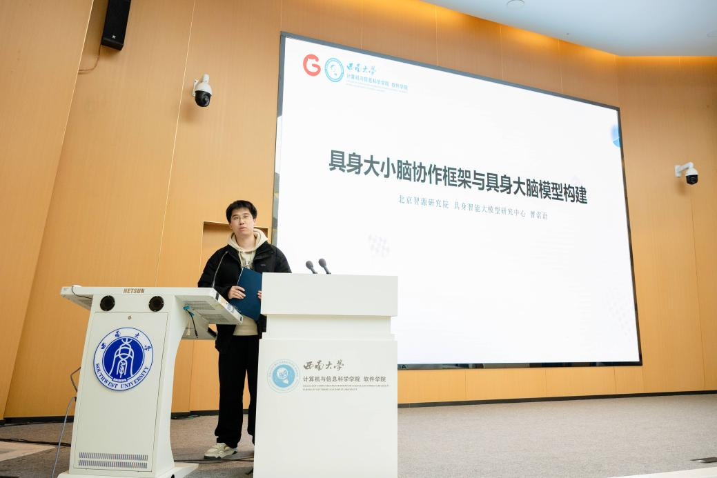 最后,智源研究院研究员曹洺语围绕《具身大小脑协作框架与具身大小脑模型构建》展开分享,探讨了具身智能在多任务、跨本体协同中的前沿进展,并介绍了RoboBrain模型在机器人高层规划与控制中的关键作用。