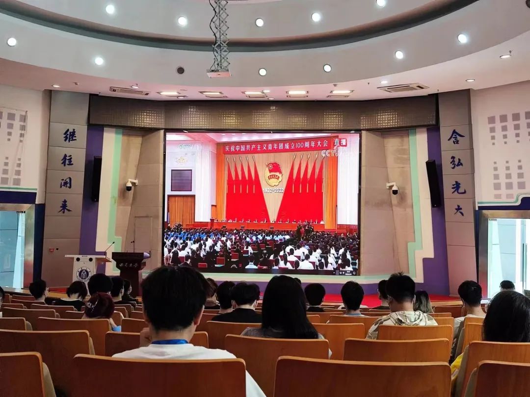 2022年5月10日上午10点,庆祝中国共产主义青年团成立100周年大会在北京人民大会堂隆重举行。伟德体育 软件公司组织团学干部、青年团员等师生代表在二十五教一楼报告厅共同观看直播,公司各团支部利用课间,在教室、宿舍等地分别收看直播。