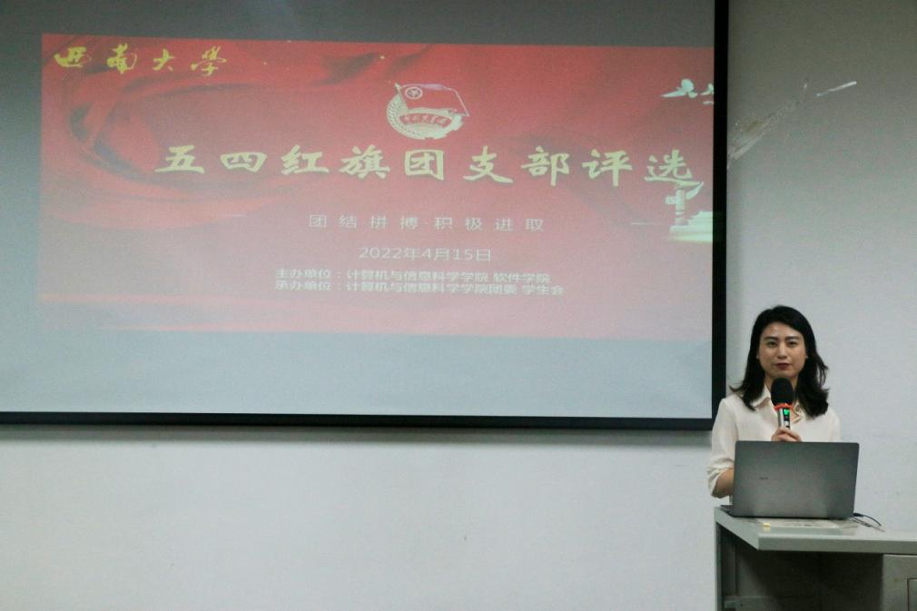 活动最后,邵羽西老师对各团支部的表现进行了总结发言。首先,邵老师充分肯定了各团支部参与评选的积极性。其次,邵老师指出了各团支部在思想引领、学风建设、社会实践、科研竞赛等方面的优势,鼓励同学们通过评选这个平台多交流、多互动,将做的好的方面继续发扬光大、对于不足之处也要迎难而上,持续改进。同时,邵老师希望各团支部能保持昂扬向上的姿态,继续增强支部凝聚力和向心力,把支部建设的越来越好。