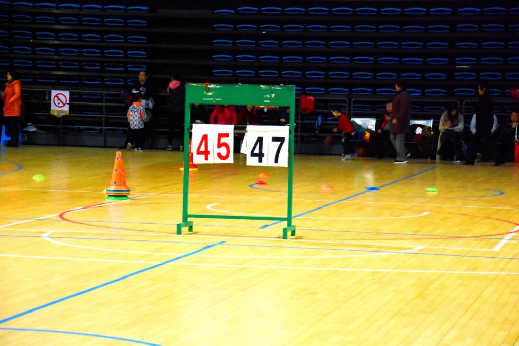 篮球在空中飞舞旋转,球员们不停变换防守进攻的姿势,他们飞快的速度,精准的抢断,尖锐的打破局势。教师队不断拉近比分,一次又一次的进球哨声为他们注入力量。员工队也不甘示弱,发挥全部身手,拦截抢夺,不留给对方可乘之机,最终将比分定格在47vs45。