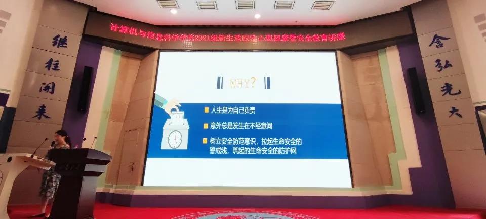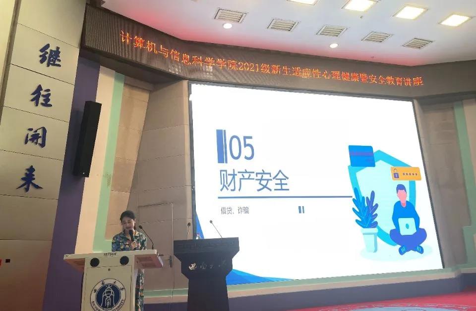 9 月 27 日下午,伟德体育 软件公司在 25 教一楼报告厅面向全体新生开展入学安全教育讲座。公司团委书记、2021 级辅导员邵羽西老师担任主讲,2021 级全体新生聆听了讲座。
