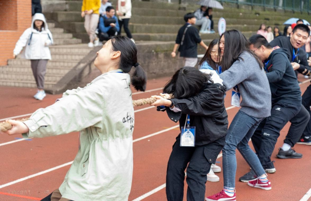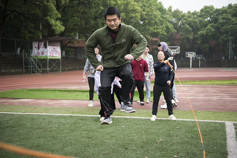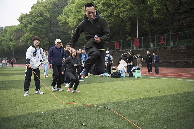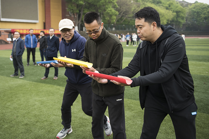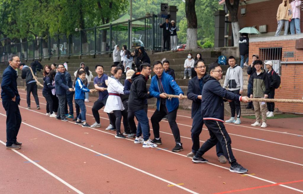 简短的开幕式结束后,各项比赛项目随之展开。“师生拔河赛”,教工队和员工队精神抖擞、蓄势待发,“加油!加油!”,在现场观众一声声加油助威的声浪中掀起了第一个高潮。比赛双方奋力向后拉着绳子。最终,经过双方激烈的比拼,教工队伍取得了胜利。