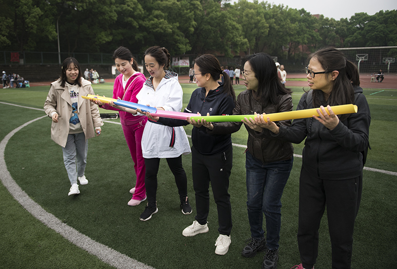 趣味运动螃蟹运球、快乐套圈、趣味飞镖、珠行万里、智传呼啦圈等项目也吸引着老师和同学们的眼光,大家纷纷组队参与,在运动中增进沟通和友谊。