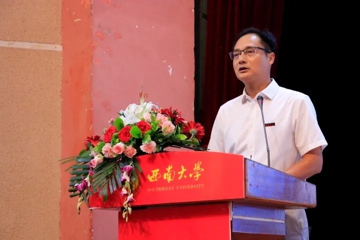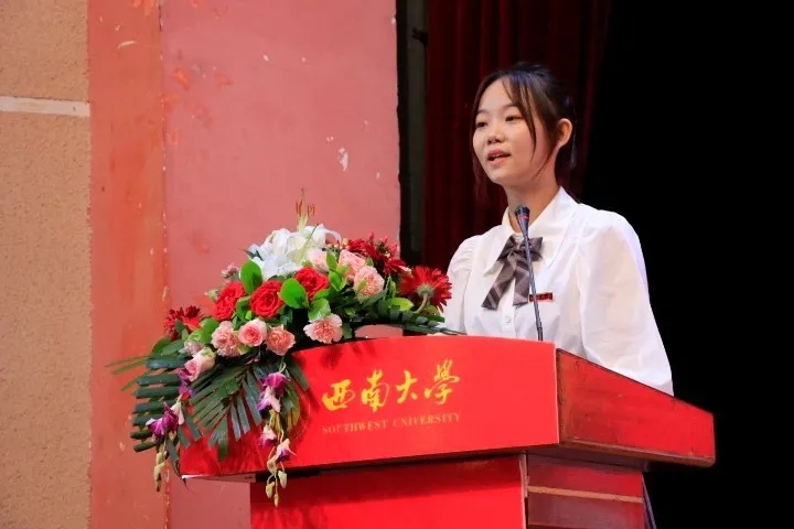 开学典礼在庄严的国歌声中拉开序幕。2019级硕士研究生李舒雨作为老生代表发言,李舒雨同学以自己的亲身经历向新生传授在伟德体育的学习经验,希望学弟学妹一不负自己、二不负西大、三不负祖国,希望学弟学妹们能牢记“做人做事做学问,尽心尽力尽责任”的院训,将计信精神发扬光大。