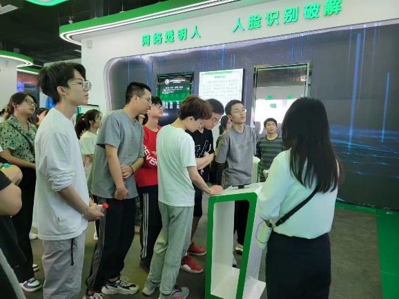 本次活动以“国家网络安全”为主题,同学们首先参观了360网络安全协同创新产业基地,领学员向大家详细介绍了基地的建设情况和基础设施,带领同学们参观了360网络安全协同创新产业基地的沙盘。随后,在领学员的指引下,同学们走进企业展厅,参观网络安全应用的不同场景,了解到基地通过整合网络安全人才培养、技术研发、市场运营等资源,构建了“政产学研用”的完整生态链。