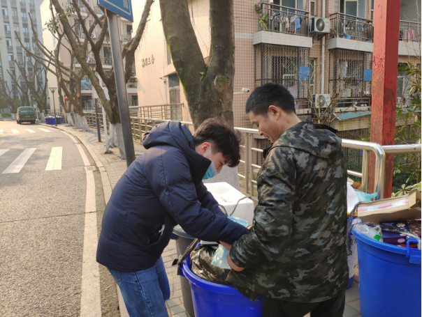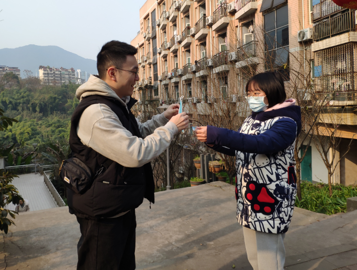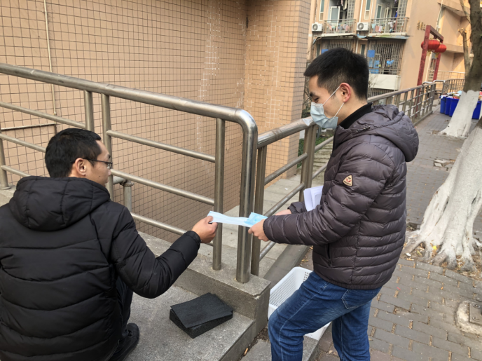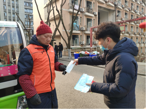 有同学刚在食堂打包好晚餐,正在回寝室的路上。收到党支部同志送上的口罩后,他表示十分感谢,并说明自己是一时疏忽,以后一定注意做好防范措施。