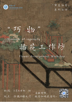插花是一门艺术,一枝一束,一插一剪,塑造不同形态,传递不同情感。3月15日下午2点30分,“巧物·插花工作坊”在25教13楼大厅举行,特邀插花师苏苏担任主讲老师、团委书记杨靖欣以及各年级员工代表参加了本次活动。活动伊始,苏苏老师向同学们进行了插花艺术的理论讲解。她谈到,花文化是一个国家和民族文化的组成部分,...