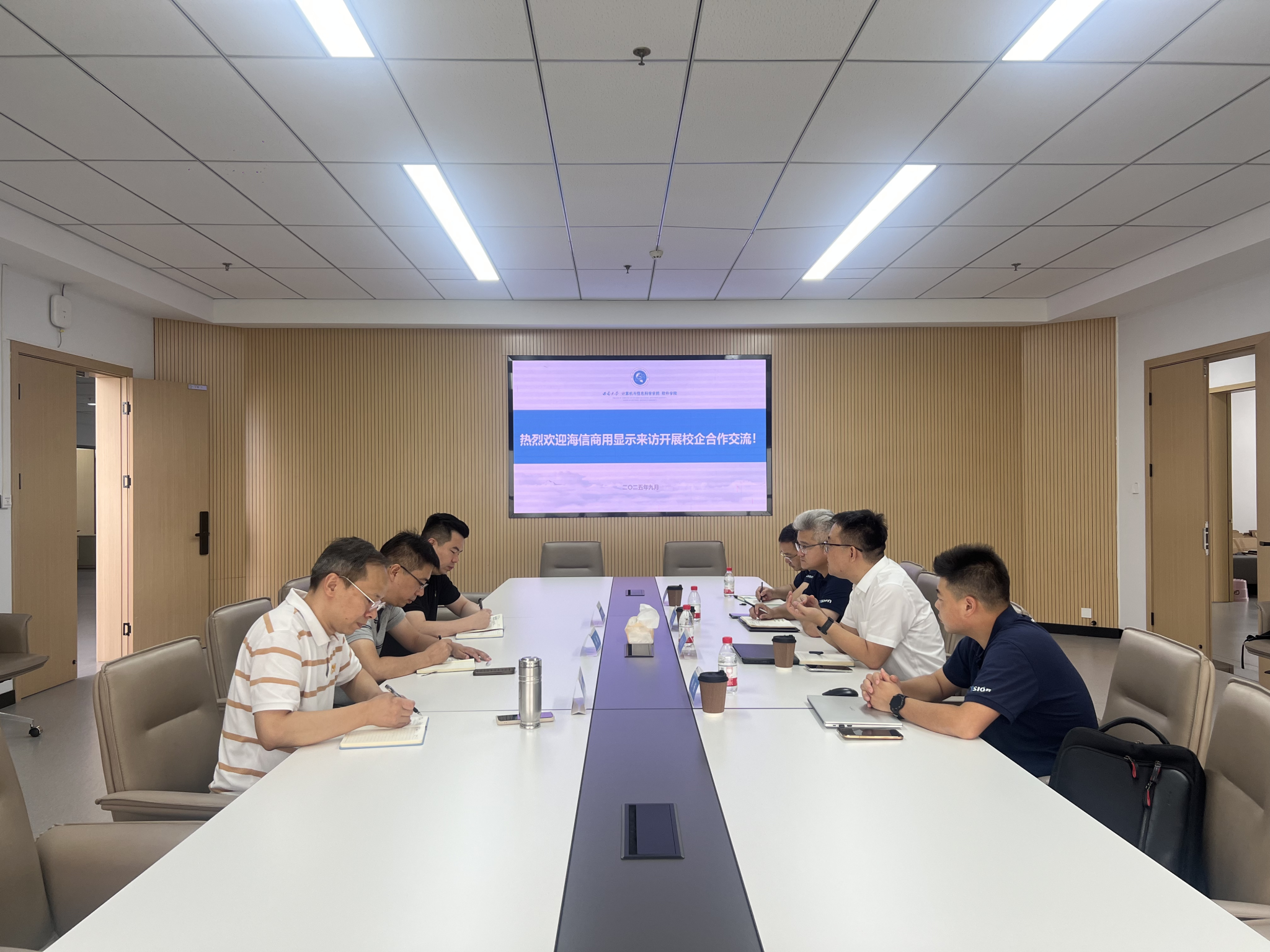 9月25日,海信商用显示方案部总经理倪立亭一行专程到访,与公司开展校企合作交流。公司党委书记易鹏、经理罗辛共同接待并参加了交流会,双方围绕科研合作、产教融合等议题展开深入交流。海信商用显示方案部总经理倪立亭介绍了公司的主营业务、产品布局等基本情况,重点介绍了智慧教育相关研发和产品情况。公司经理罗辛介...