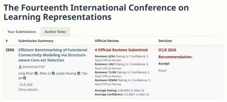 近日,公司“复杂系统与交叉科学应用”创新团队2022级博士生詹岭在导师贾韬教授指导下完成的研究成果被The International Conference on Learning Representations(ICLR 2026)录用。论文题为《Accelerating Benchmarking of Functional Connectivity Modeling via Structure-aware Core-set Selection》。 针对计算...